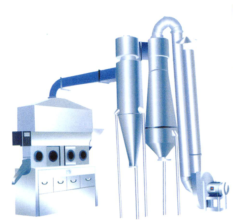 ※ 沸騰干燥器,又稱流化床,它是由空氣過濾器、沸騰床主機(jī)、旋風(fēng)分離器、布袋除塵器、高壓離心通風(fēng)機(jī)、操作臺(tái)組成。由于被干燥物料的性質(zhì)不同,配套除塵設(shè)備時(shí),可按需要進(jìn)行,可同時(shí)選擇旋風(fēng)分離器、布袋除塵器,也可選擇其中一種。一般來說,比重較大時(shí)的物料只需要選擇旋風(fēng)分離器,比重較輕、較細(xì)的物料需配套布袋除塵器,并備有氣力送料裝置供選擇。
