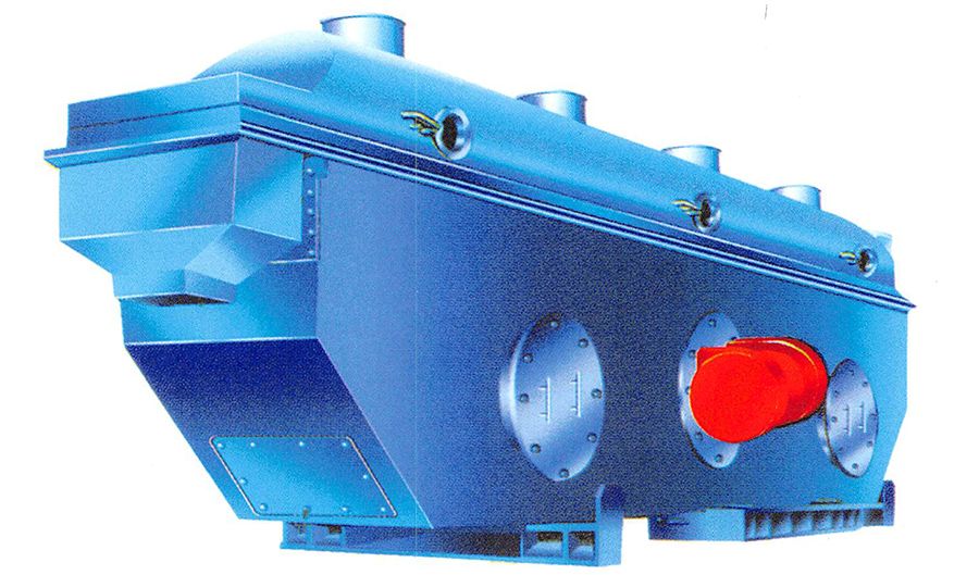 ※ 物料自進料口進入機內(nèi),在振動力作用下,物料沿水平方向拋擲向前連續(xù)運動,熱風(fēng)向上穿過流化床同濕物料換熱后,濕空氣經(jīng)旋風(fēng)分離器除塵后由排風(fēng)口排出,干燥物料由排料口排出。